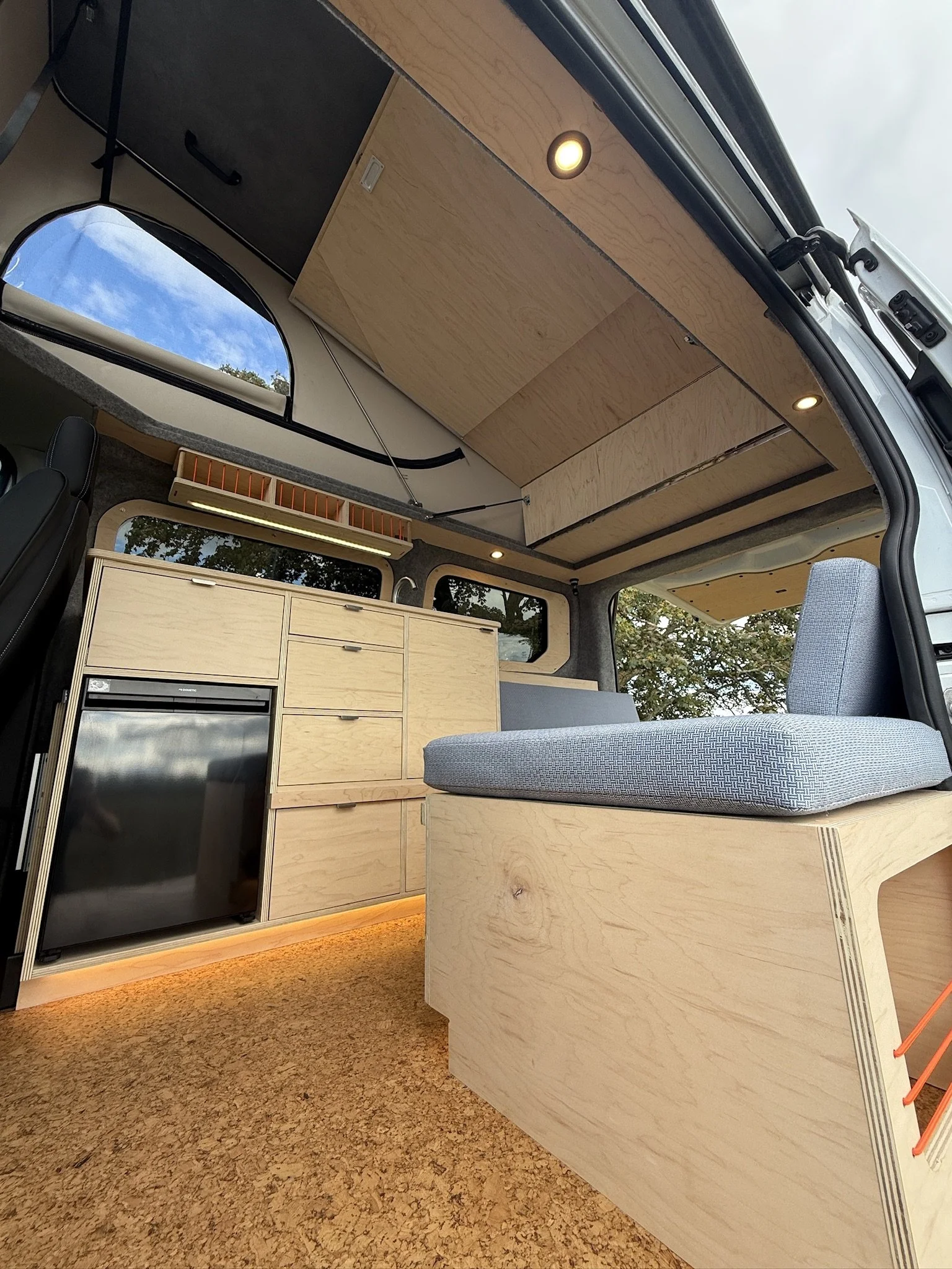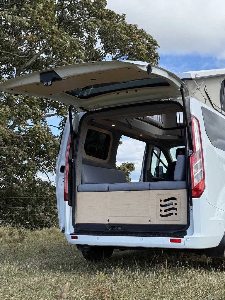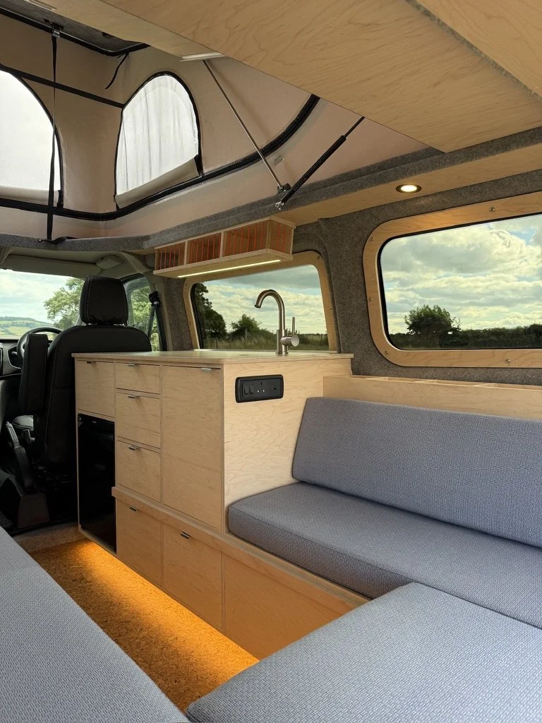 First Bed: Bi-fold bed (180 x 120cm) folds down from the pop-top roof